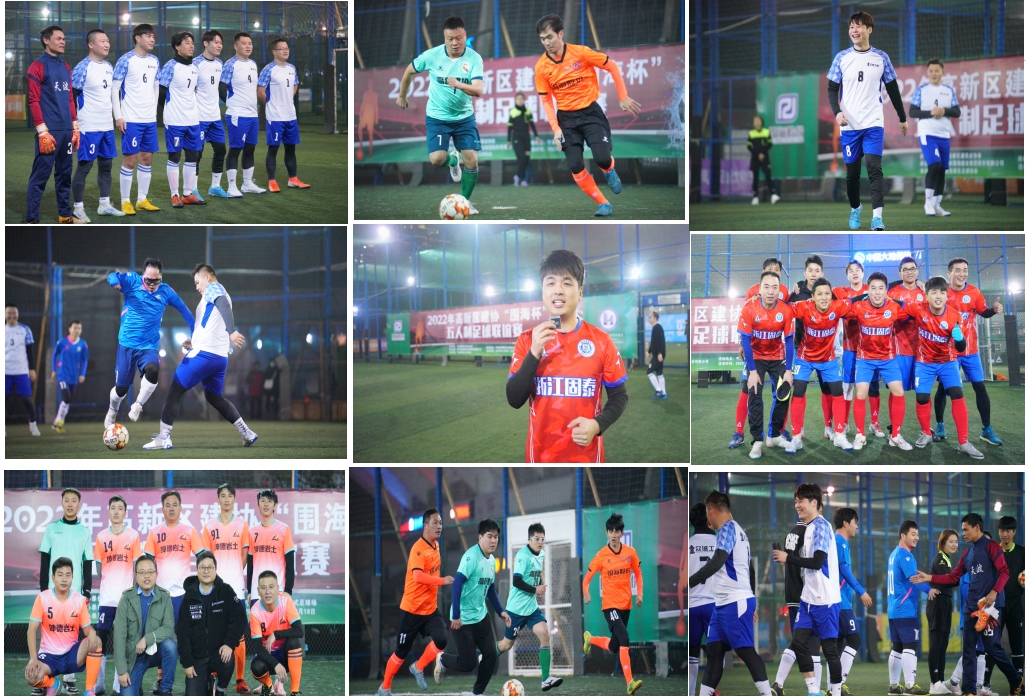 为加强区内企业的沟通交流,构建积极向上,拼搏进取的工作氛围,增进彼此间了解及凝聚力,进一步促进协会活动,12月9日下午,由宁波市高新区建筑业协会牵头组织高新建设局、区城管局、九峰海洋建设、围海建设、宁波众诚工程、镇海石化工程、浙江固泰检测、浙江坤德岩土等企事业单位举办了一场精彩的5人制足球友谊赛。