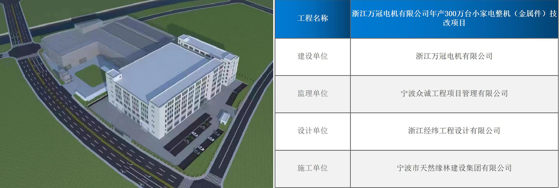 > 浙江万冠电机有限公司年产300万台小家电整机(金属件)技改项目