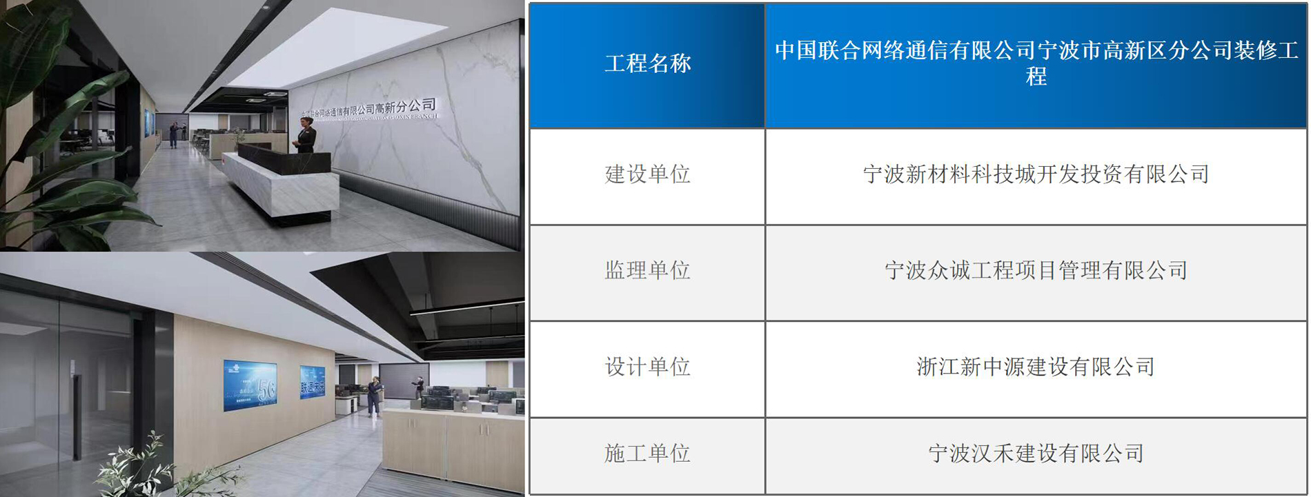 > 中国联合网络通信有限公司宁波市高新区分公司装修工程